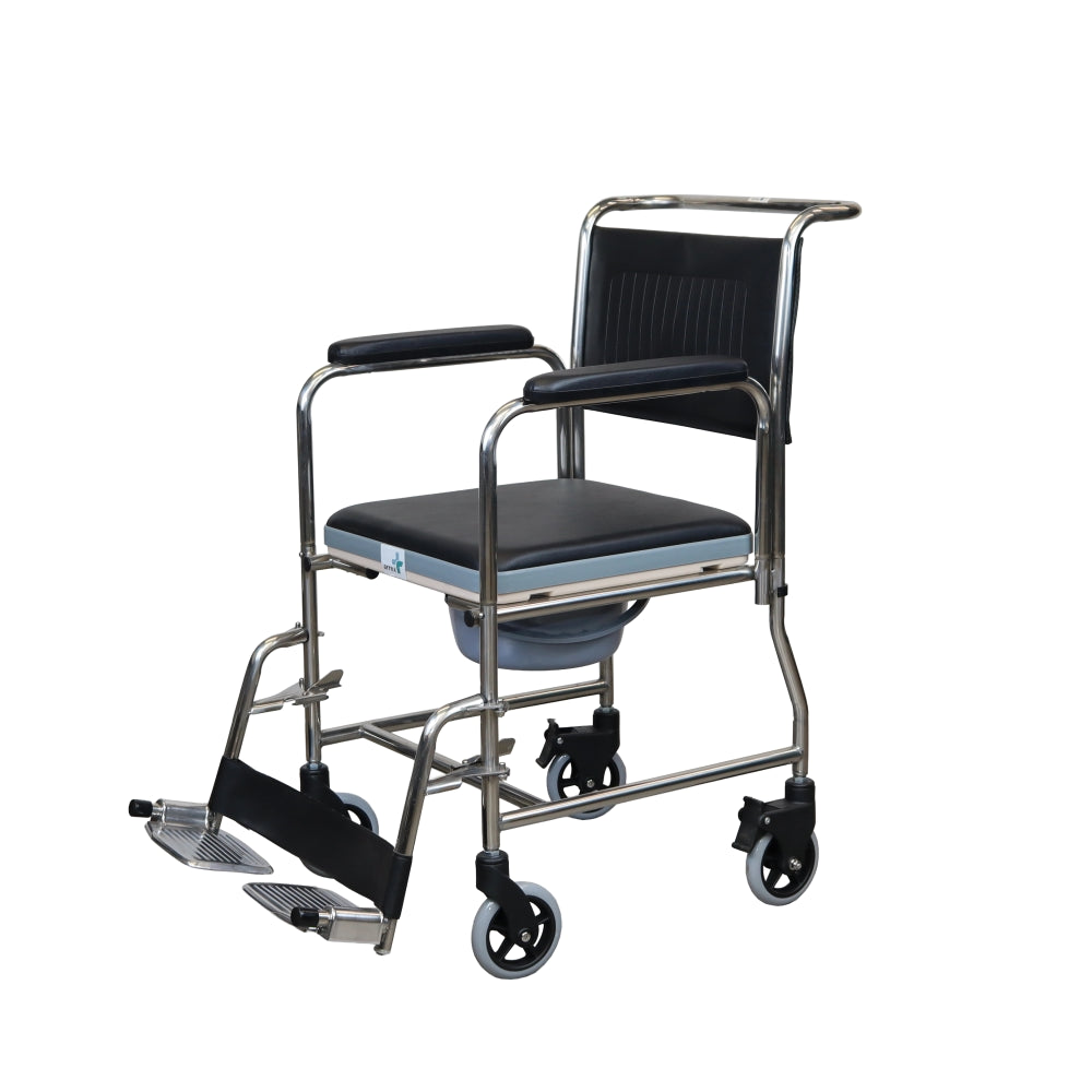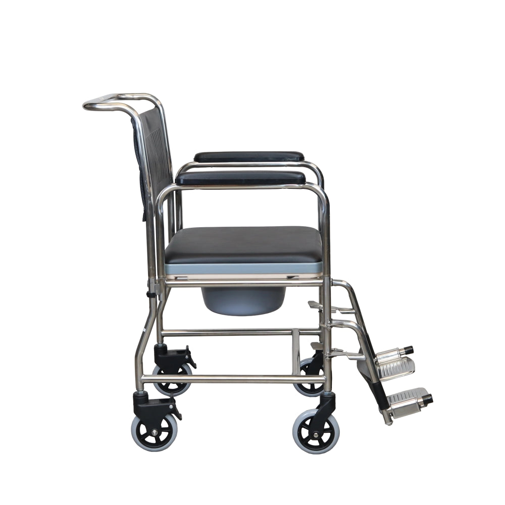 - The attached pot enhances the wheelchair's functionality for users who may require toileting assistance.