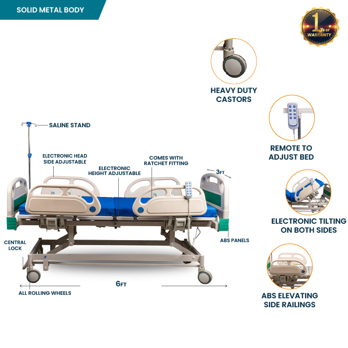 - Electronically adjustable head section to cater to patients' comfort and medical needs.