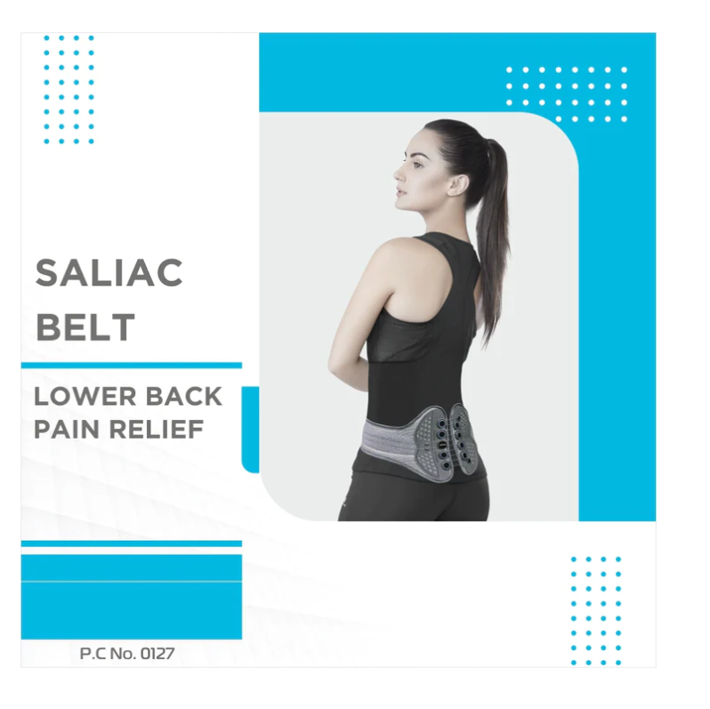 The Saliac belt is made from a latex-free, breathable and skin-friendly material. The outer layer is made from breathable netted fabric for ventilation and the inner layer is made from skin-friendly soft foam to enhance comfort. The clinically tested nylon lace has a weight-bearing capacity of 75 kgs.