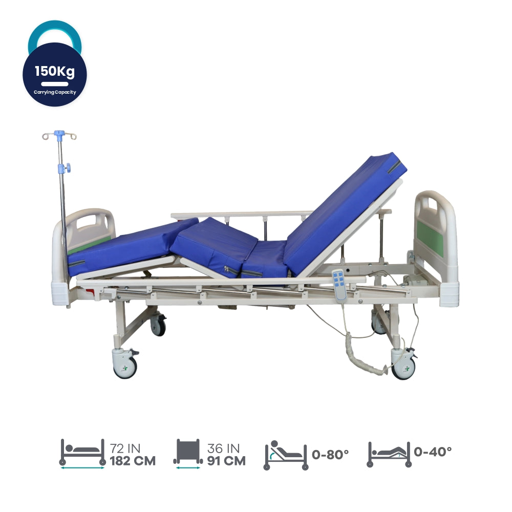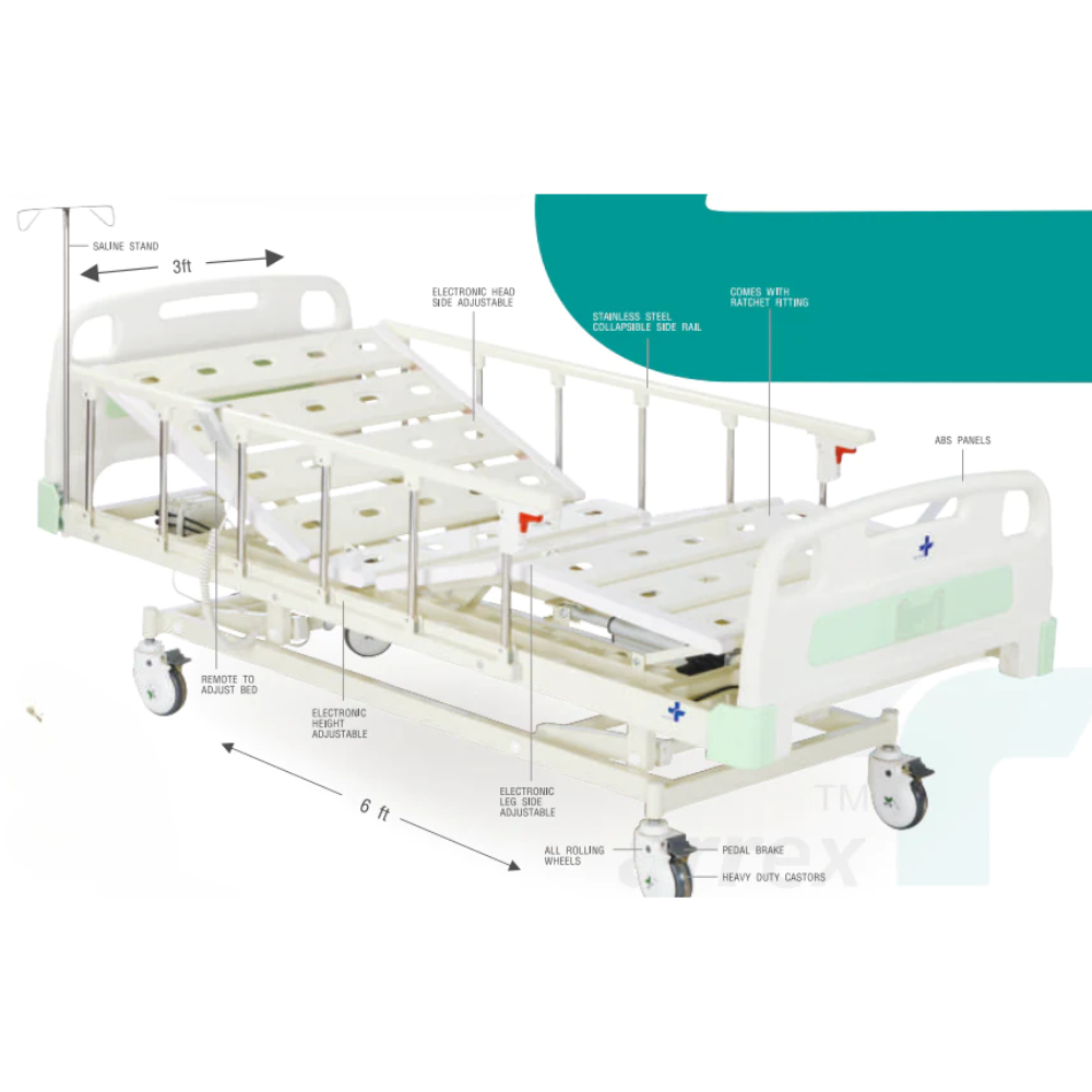 These features collectively create an advanced hospital bed system that prioritizes patient comfort, safety, and the convenience of healthcare providers. The inclusion of side railings, heavy-duty castors with brakes, electronic adjustments, and integrated accessories makes it a comprehensive solution for modern healthcare settings.