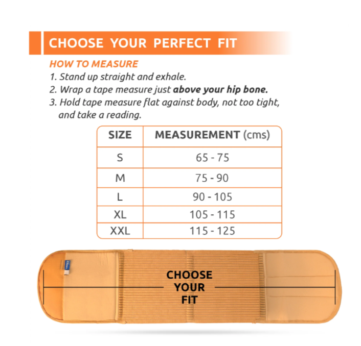 Choose correctly from the available size chart. This Abdominal Belt is Unisex. Hand wash with mild detergent and water at room temperature. Dry in the shade on a flat surface. Do not dry clean Do not Iron or Bleach.