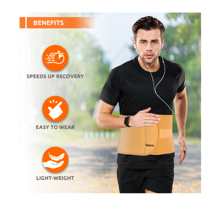 Latex-free double-covered lycra is blended with composite yarn to make the Vissco Abdominal Belt material durable. The monofilament elastic undergoes a special coat to make the material last longer & anti-fungal.