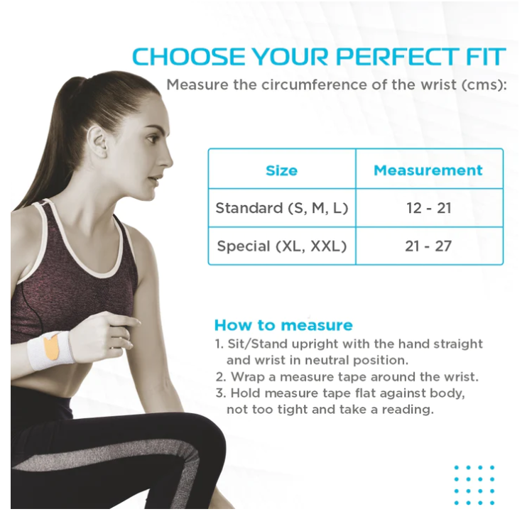 - Wrap the support around the wrist and lock it with the strap to a comfortable and secure fit.