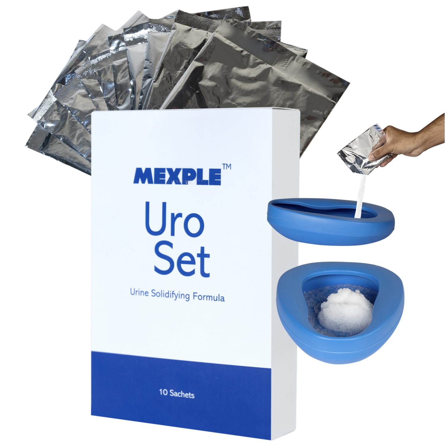 MEXPLE Uroset Urine Solidifier Urine Absorbent Powder| Urine Absorbent Magic Gel Turns Urine Into Gel Immediately| Bio Gel Gelling Agent For Portable Waste And Pet Loo| 10 Sachets Of 10Gms In 1 Pack